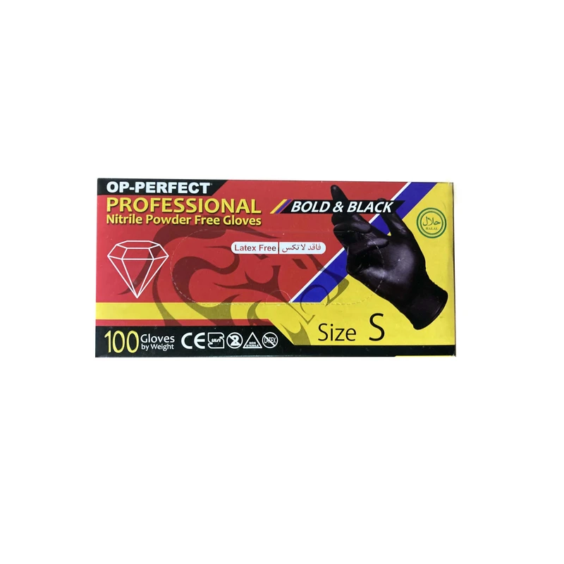 دستکش نیتریل مشکی سایز اسمال OP PERFECT بولد پروفشینال