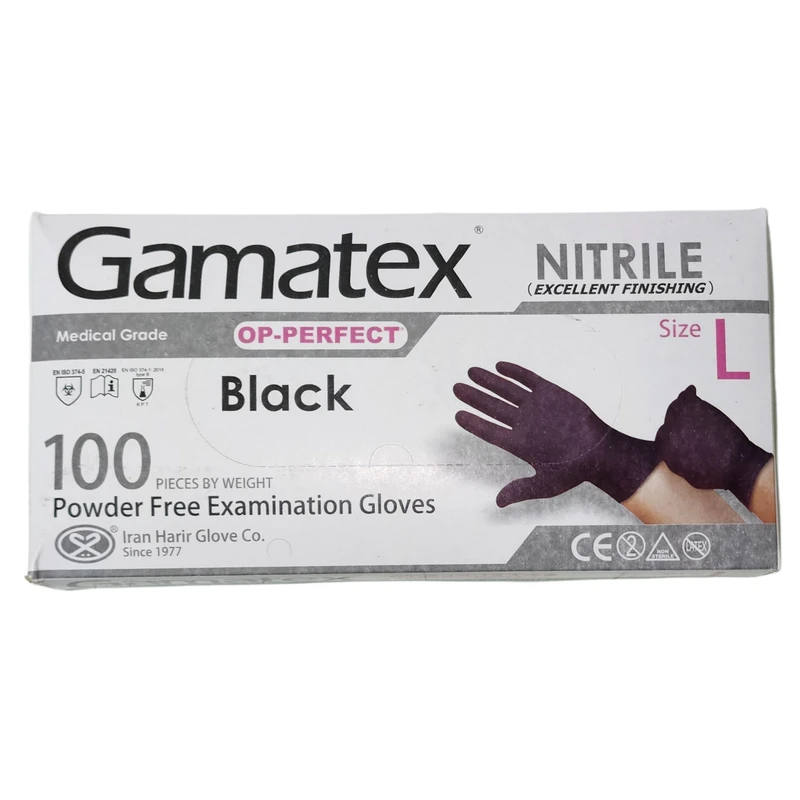 دستکش نیتریل لارج گاماتکس مشکی رنگ